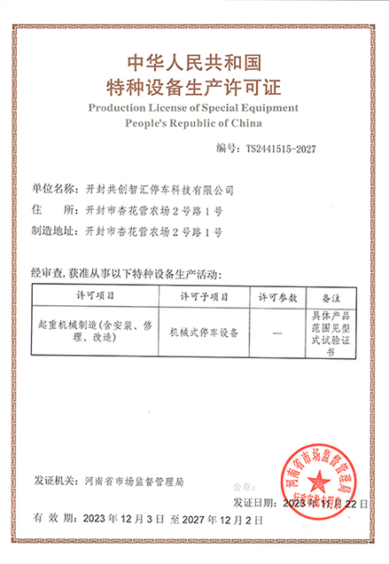 開(kāi)封共創(chuàng)智匯停車(chē)科技有限公司總部位于開(kāi)封市城鄉(xiāng)一體化示范區(qū),擁有研發(fā)生產(chǎn)廠區(qū)80畝,鋼結(jié)構(gòu)車(chē)間25000平方米,大型綜合試驗(yàn)場(chǎng)8000平方米,立體停車(chē)設(shè)備年生產(chǎn)能力30000車(chē)位。